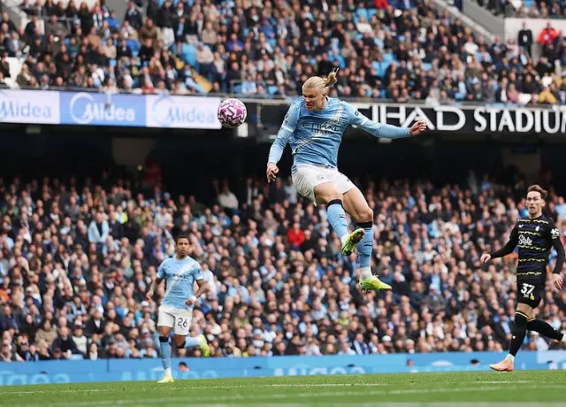 Phút 58, sau một tình huống phát động từ giữa sân, Phil Foden có pha chuyền dọc biên trái thông minh cho tài năng trẻ O’Reilly. Cầu thủ này thoát xuống cực nhanh và tạt bóng chuẩn xác vào trong. Haaland bật cao đầy sức mạnh giữa vòng vây hậu vệ đội khách và đánh đầu dũng mãnh, mở tỷ số cho Man City.