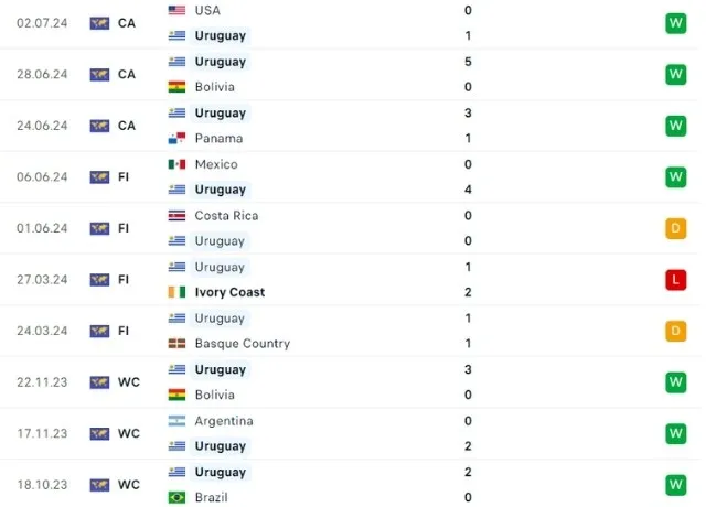 Uruguay đã có một vòng bảng ấn tượng với 9 điểm tuyệt đối, chứng minh sức mạnh vượt trội của họ. Đội bóng áo xanh-trắng đã giành chiến thắng dễ dàng trước Panama với tỷ số 3-1. Tiếp theo đó, Uruguay hủy diệt Bolivia 5-0 và đánh bại Mỹ 1-0. Lối chơi kiểm soát bóng chặt chẽ và khả năng phòng ngự kiên cố là điểm mạnh của Uruguay. Tuy nhiên, sự phụ thuộc vào Núñez có thể là một điểm yếu nếu Brazil tìm cách khóa chặt anh.