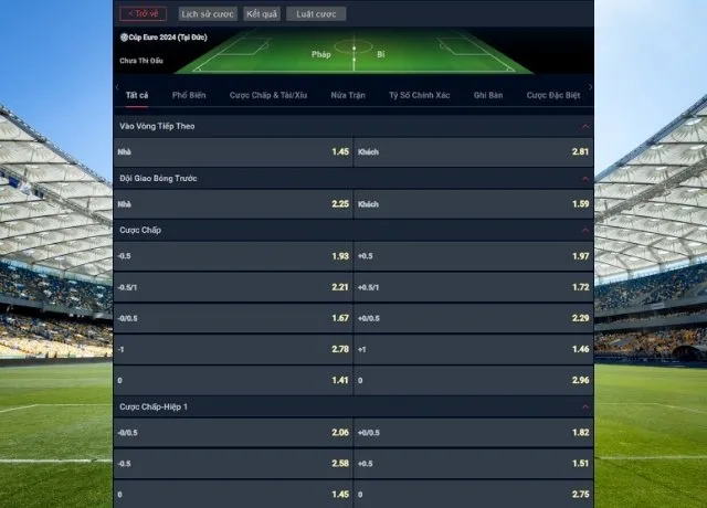 Bản tỷ lệ kèo Pháp vs Bỉ 23h00 ngày 1/7/2024
